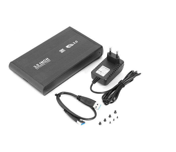 ENCLOSURE HDD 3.5 3.0 is a SuperSpeed USB 3.0 connection, compatibility with 3.5-inch SATA HDDs and SSDs, and a requirement for an external power adapter (usually 12V/2A) to operate.