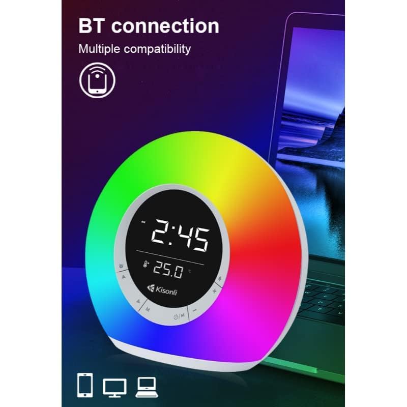 Enjoy customizable lighting with RGB color cycles and warm night light modes. Easily toggle using intuitive touch controls for ambiance that matches your mood. - Smart Clock Features with LCD Display