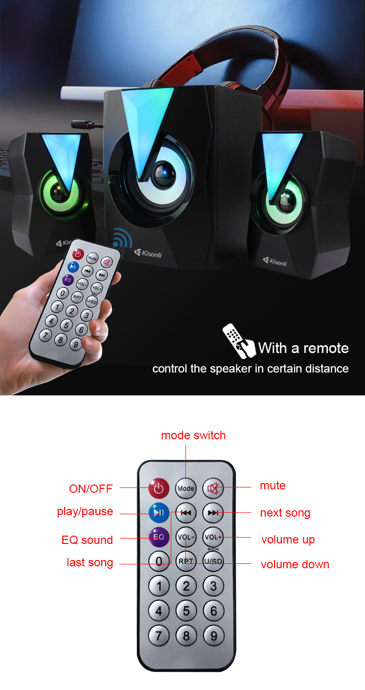 The KISONLI-TM-4000U is a 3 Pieces RGB Bluetooth Speaker With a total of 16W Output With Remote Control