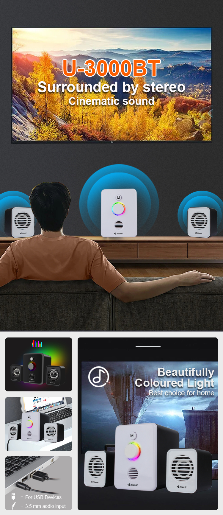 KISONLI U3000BT Bluetooth Speaker 2.1 Channel