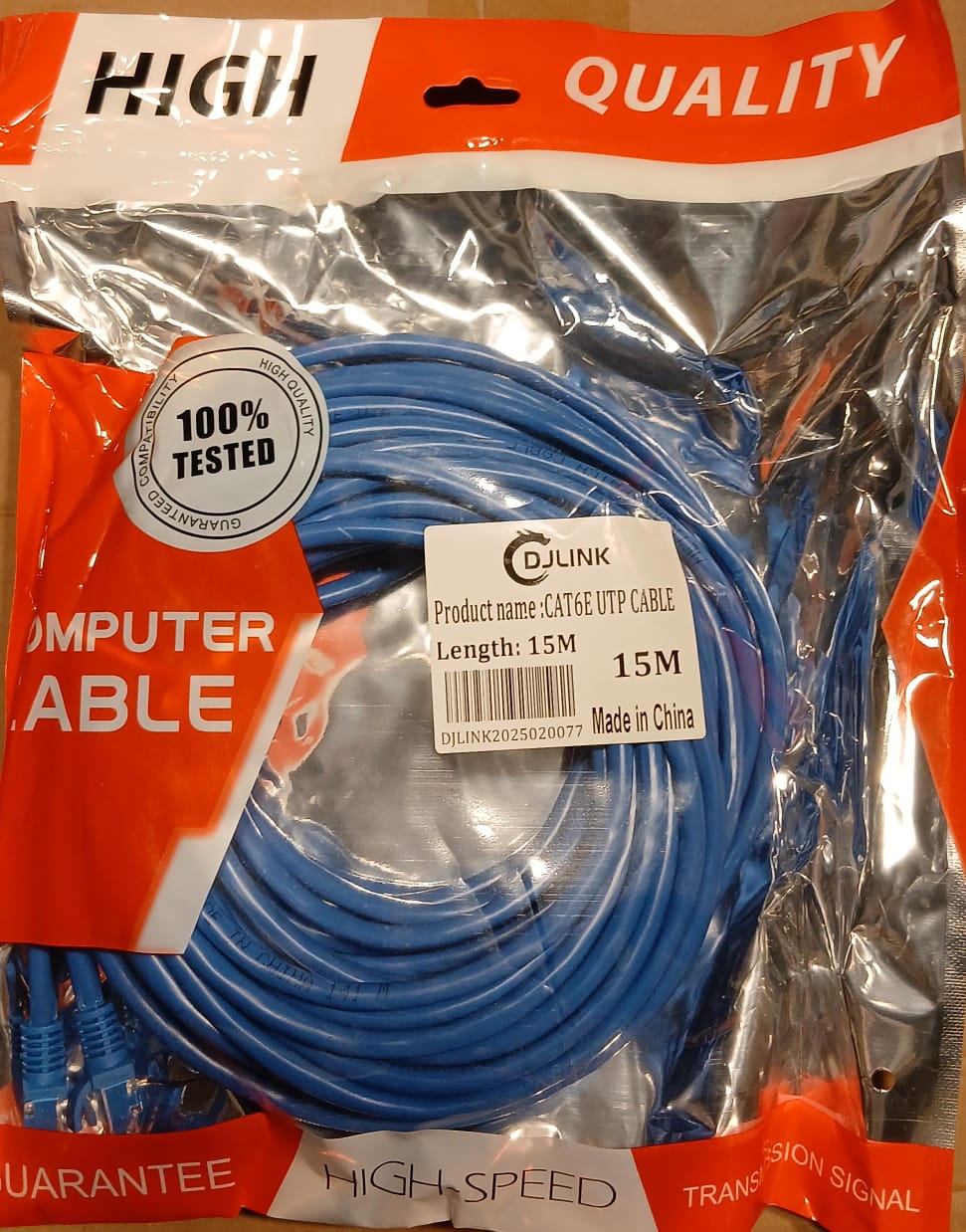 LAN CABLE CAT6 15 METERS includes tighter wound wire pairs to reduce crosstalk, often featuring a central plastic divider to separate them.