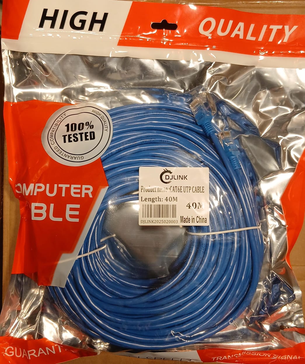 LAN CABLE CAT6 40 METERS includes tighter wound wire pairs to reduce crosstalk, often featuring a central plastic divider to separate them.