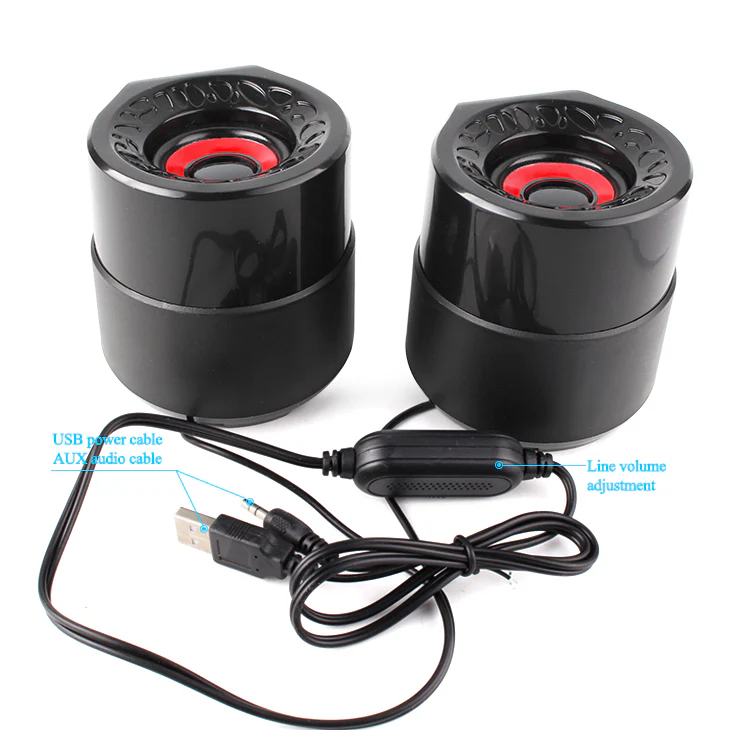 Speaker KISONLI A909 USB AUX is a wired computer speaker of 2 Pieces, featuring 2 x 3W (6W RMS) output, a 4 Ohm impedance, and a 20Hz – 20KHz frequency response.