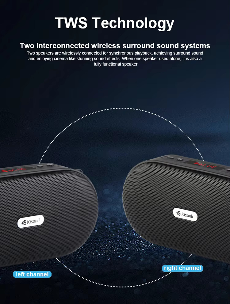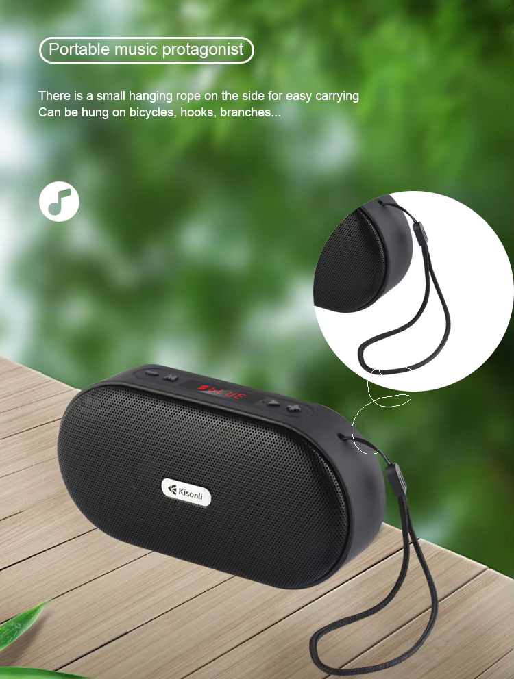 Speaker KISONLI S8Plus is a portable Bluetooth speaker featuring a 5W output, a 1200mAh battery, an LCD display, and multiple playback modes. It supports Bluetooth, TF card, USB, and FM radio, offering versatile listening options. It’s lightweight and compact, making it ideal for on-the-go use.